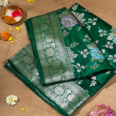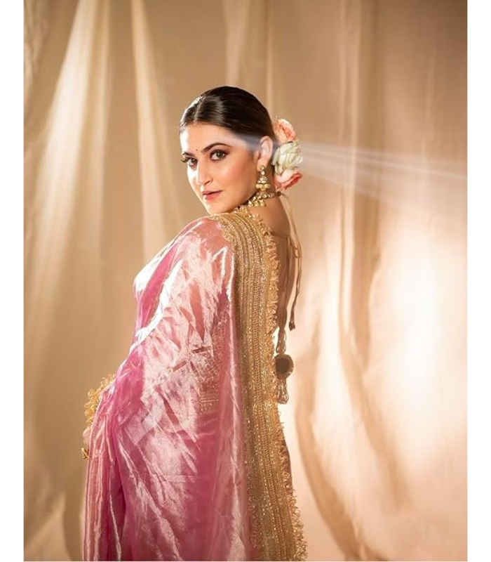 Drape yourself in the delicate glow of Tissue Silk Sarees — light, lustrous, and effortlessly elegant.